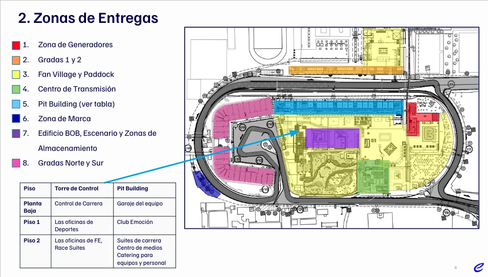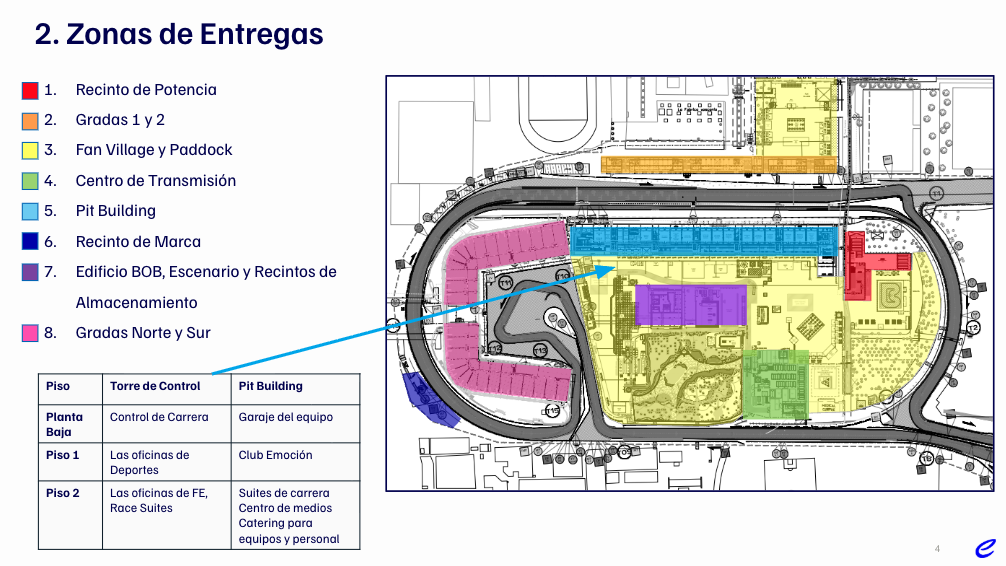 Todas las entregas deberán ser programadas por lo menos con 48 horas de antelación a su llegada al circuito.